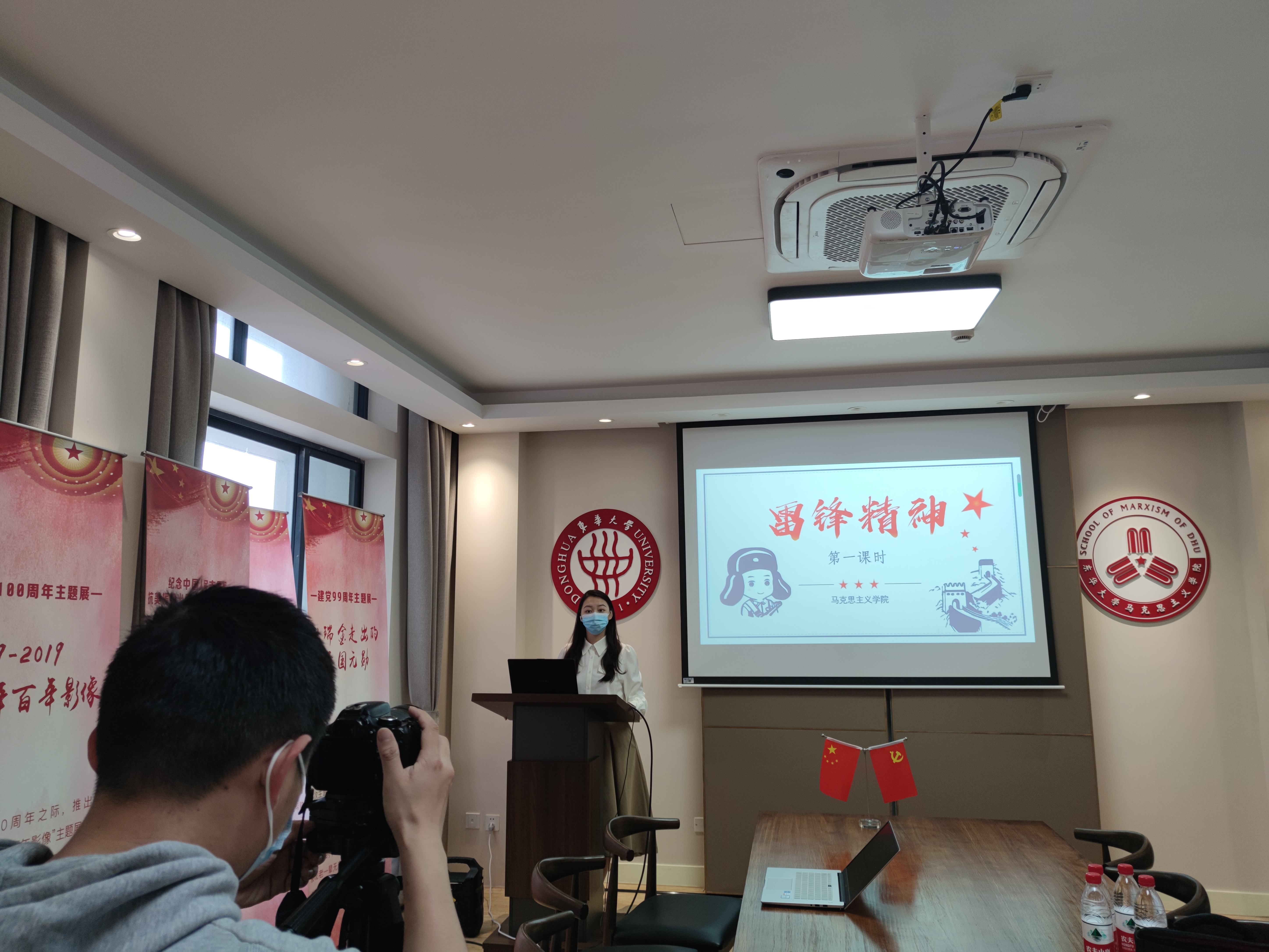 “伟大精神”系列课程之“雷锋精神”录制现场 学院马理硕党支部积极响应学校党委号召,严格落实学校各项疫情防控要求,切实发挥战斗堡垒作用,争当模范先锋,让党旗在抗疫一线高高飘扬,为坚决打赢疫情防控突击战积极贡献力量。支部书记曾璇表示,在认真落实好防疫要求的同时,坚持学习不断线,支部将坚持“每日打卡”学习制度,利用易班平台定期组织推送专题理论学习,不断加强思想理论武装,引导广大党员和同学们切实提高政治站位,统一思想认识。