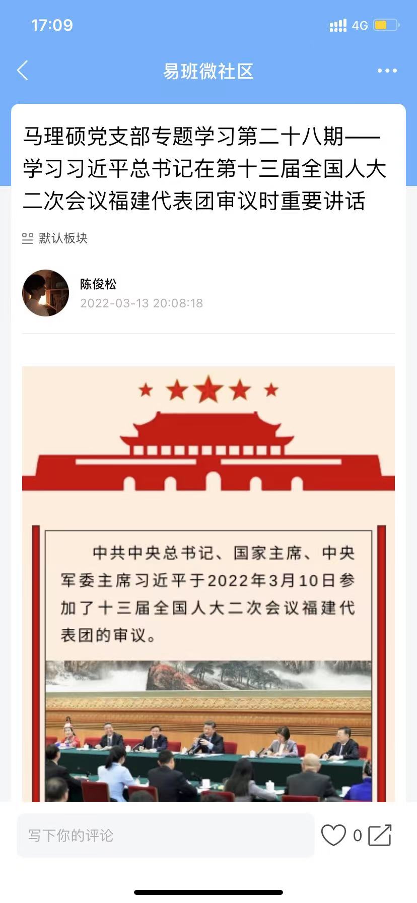 线上主题班会 马理21硕的段怡雯同学作为党员代表在发言中表示,面对疫情,党员同志们更要以实际行动,发挥模范带头作用,彰显青年党员的使命担当;曹月晨同学因疫情被隔离在家,与同学们分享了居家线上学习的方法、调整心理状态的技巧;马理20硕罗海旗同学作为班干部代表发言,号召同学们疫情期间坚持“三件套”、“五还要”的防疫要求,不焦虑、不恐慌、不信谣、不传谣,积极配合落实学校各项防疫要求;纪沛彤同学作为学院研究生进东华附校讲党史思政课的具体负责人,正协助学院积极组织同学们推进“伟大精神”系列课程视频录制等工作,结合集体备课的实践,分享了疫情期间如何做好学习宣讲不断线的体会。
