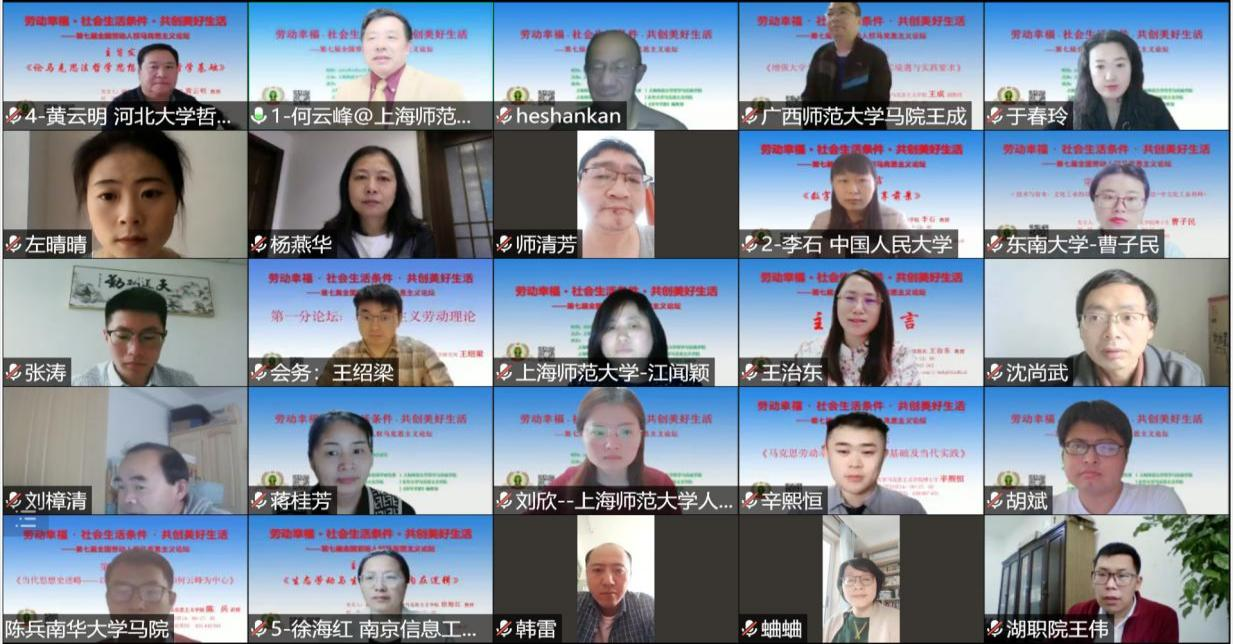 4月23日,由上海师范大学知识与价值科学研究所主办,yl8858永利集团、上海师范大学哲学与法政学院、上海师范大学yl8858永利集团、上海师范大学期刊社、《青年学报》编辑部等共同承办的“劳动幸福·社会生活条件·共创美好生活”——第七届全国劳动人权马克思主义论坛顺利举行。此次论坛在线上进行,来自全国各地400余名专家学者共聚“云端”。我院院长王治东教授与学院部分教师参会。