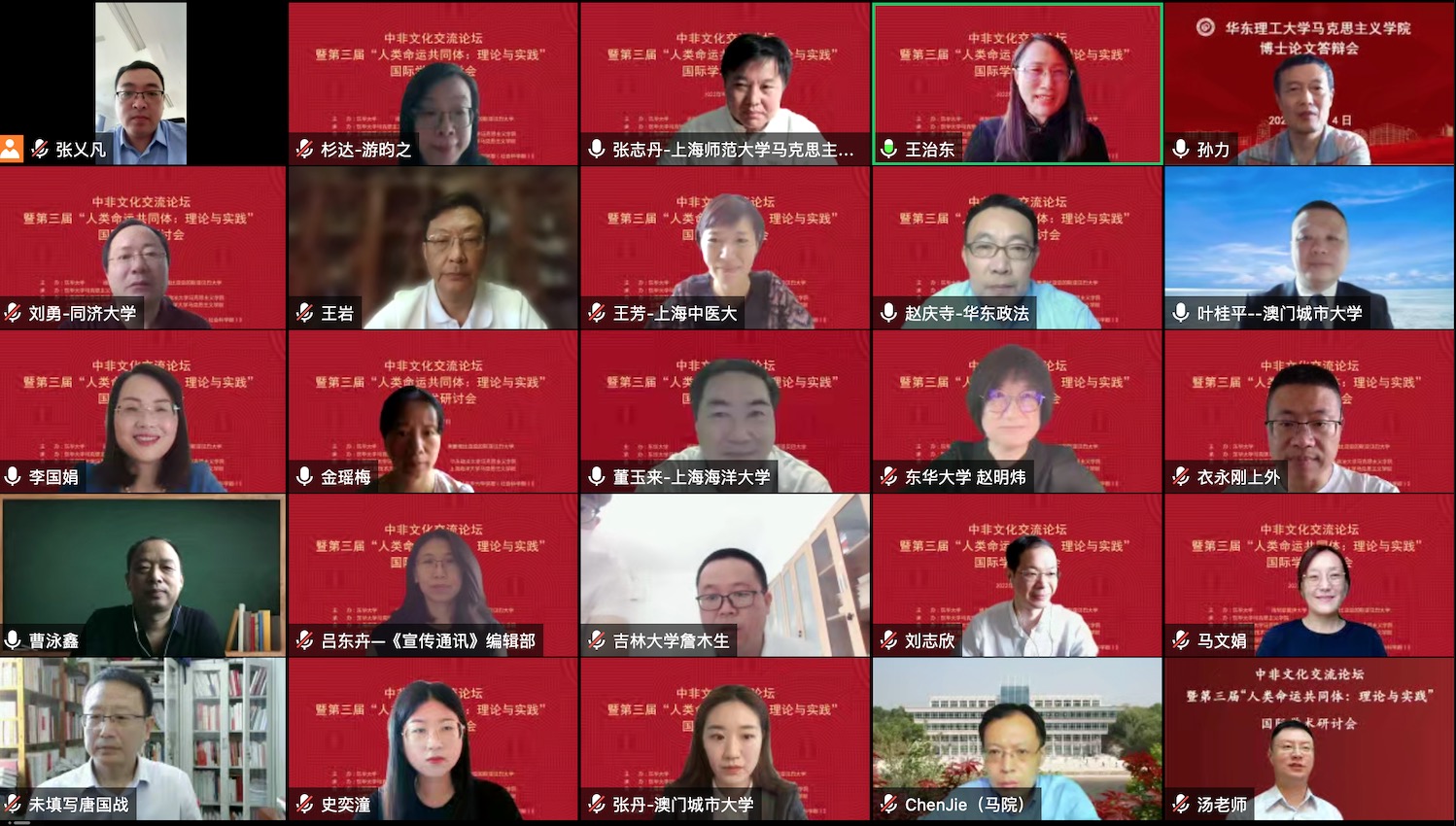 上午9时,研讨会在腾讯会议线上举行。本次国际研讨会的合办单位有上海师范大学yl8858永利集团、华东政法大学yl8858永利集团、上海工程技术大学yl8858永利集团、上海海洋大学yl8858永利集团、信阳师范学院yl8858永利集团,协办单位有yl88858永利中国马克思主义理论与当代实践研究基地、上海市习近平新时代中国特色社会主义思想研究基地yl88858永利中国基地、上海高校思政课名师工作室(王治东工作室),《毛泽东邓小平理论研究》《上海宣传通讯》《yl88858永利中国学报(社会科学版)》作为支持期刊参会。会议分为主旨发言会场和4个分会场,来自全国各地的线上参会人员有120多人。研讨会由分论坛主席、yl8858永利集团院长王治东教授主持,她指出,中非文化交流论坛在第三年发生了整体结构性的改变,研究议题的增长性和专家学者的关注度较之以往有了新的突破,这也得益于多方的支持和参与。论坛关注年轻学者的成长,四个分论坛中有两个是提供给青年学者的。本次论坛收到了66篇稿件,经评委会评审,评出论文一等奖5人,二等奖8人,三等奖10人,优秀奖17人。