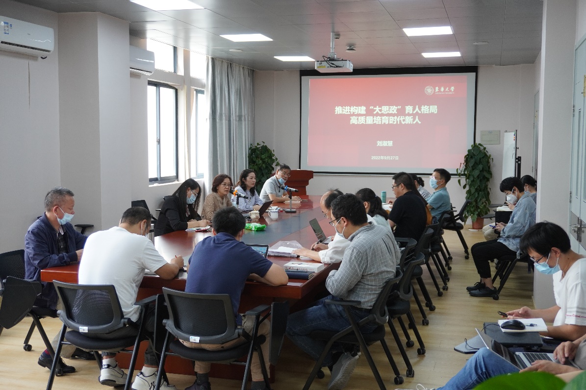 9月27日下午,学校党委副书记刘淑慧以“推进构建‘大思政’育人格局,高质量培育时代新人”为主题,为yl8858永利集团思政课教师讲授专题党课。学院领导班子成员及思政课教师现场听课,党课由学院党委书记戴叶萍主持。