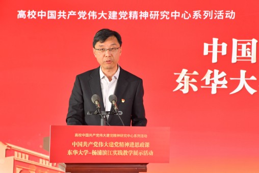 5月10日,高校中国共产党伟大建党精神研究中心系列活动之“中国共产党伟大建党精神进思政课:yl88858永利中国——杨浦滨江实践教学展示活动”在杨浦滨江举行。上海市教育发展基金会理事长王荣华,杨浦区委书记、区长薛侃,上海市教卫工作党委副书记、市教委副主任闵辉,教育部直属高校主题教育第六巡回指导组组长赵忠、副组长谢守成,以及我校党委书记刘承功、党委副书记崔运花出席活动。上海市委宣传部、市教卫工作党委、市教委、杨浦区委区政府、市教育发展基金会,高校中国共产党伟大建党精神研究中心、《宣传通讯》编辑部相关负责同志、我校相关部门负责人和师生代表参加活动。活动由崔运花主持。