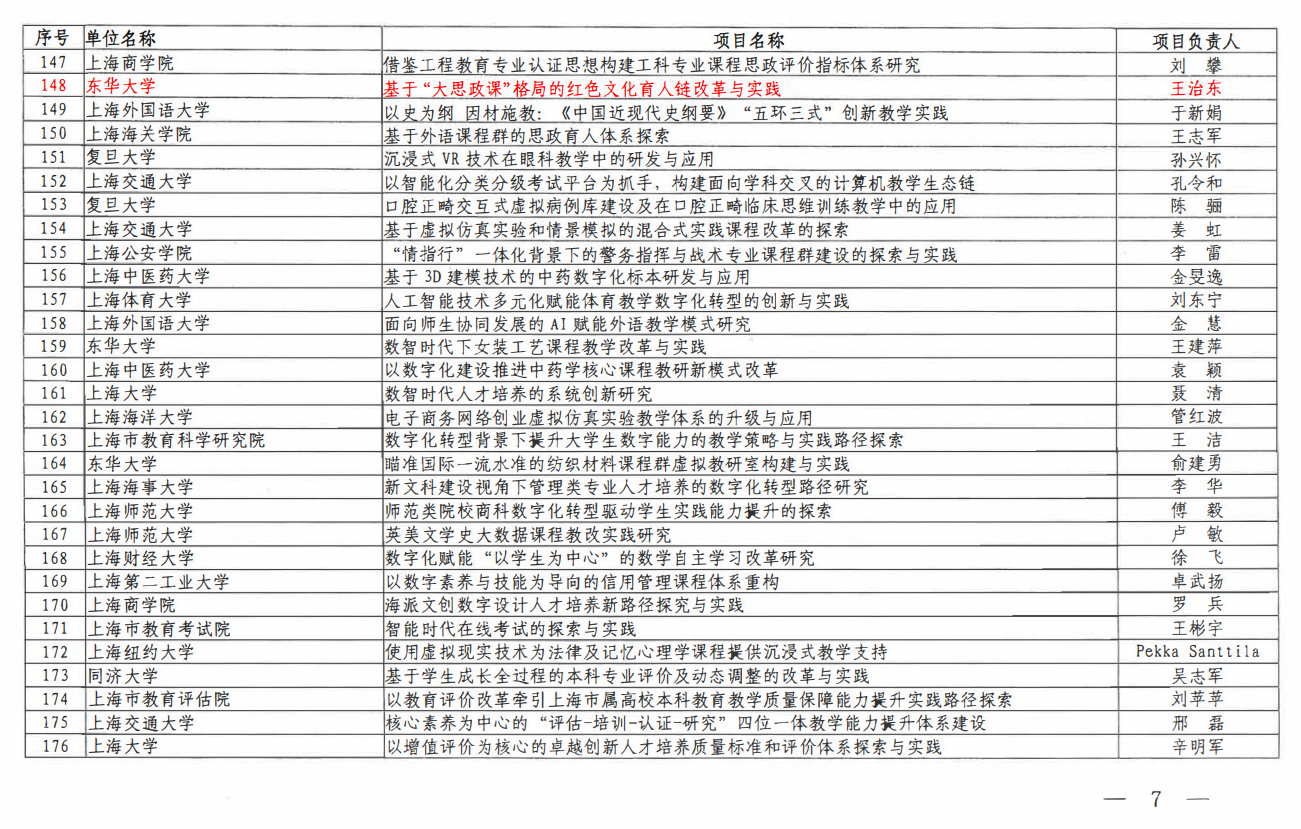 近日,上海市教委公布了“2023年上海高校本科重点教改项目立项名单”,我院王治东老师领衔申报的“基于‘大思政课’格局的红色文化育人链改革与实践”获得立项,这是学院推进“大思政课”建设成果的重要体现。