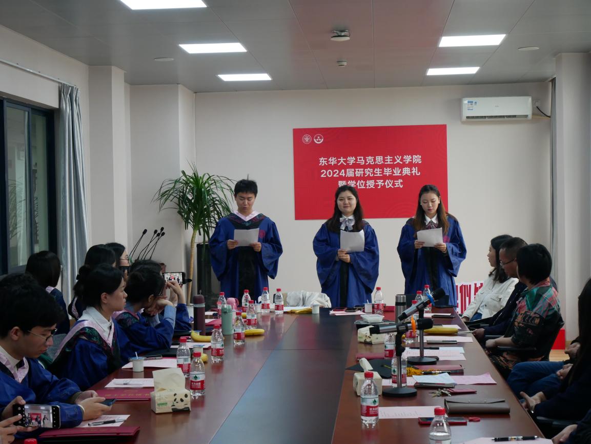 学院党委书记戴叶萍在毕业典礼上致辞,对毕业生顺利完成学业表示热烈祝贺,对导师们在培养学生过程中的辛勤付出表示衷心感谢!她祝福毕业生们前程似锦,并希望大家始终坚定理想信念,牢记初心使命,做马克思主义的坚定信仰者和忠实实践者;坚持德行操守,胸怀大局,光明磊落,做品格高尚的人;学会感恩奋进,感恩学校、学院和老师们的培养,积极回报社会,以昂扬向上的姿态,奋进新征程,建功新时代,努力为中国式现代化建设贡献青春力量。