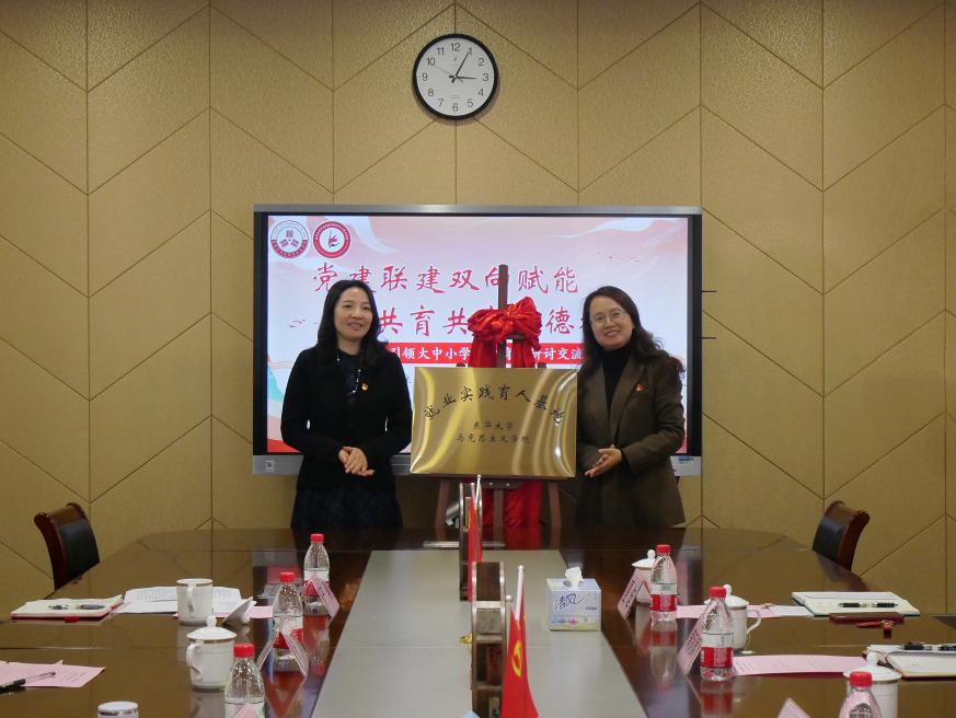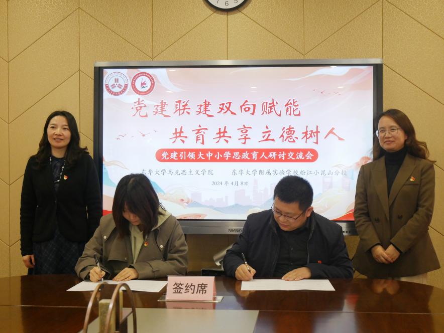 党建引领大中小学思政育人交流研讨 杨柳对yl8858永利集团师生表示热烈欢迎,并从历史溯源、办学理念、强师兴校、质量立校、文化亮校等方面介绍了小昆山分校的办学情况,并着重介绍校园文化特色,如二陆文化、剪纸篆刻、科技创新、劳动教育等。她希望在后续的合作中东华马院能在打开学生视野、助力教师专业成长、拓宽学校育人途径等方面给予更多指导和帮助。 戴叶萍对小昆山分校为学院提供党建联建和就业育人平台表示衷心感谢,并从组织共建、资源共享、人才共育三方面提出“党建引领思政育人”深入合作共建设想。她希望今后更好发挥yl8858永利集团和小昆山分校的优势特色,在中小学思政课建设和优秀传统文化传承等方面进一步加强合作。 会上,宣蕊介绍了学院党建和育人工作特色,栗锐锋就思政教育的目标和具体举措进行交流,双方参会师生围绕共同组织党建活动、提升研究生讲思政课实效性等方面进行了深入交流。 戴叶萍和杨柳共同揭牌就业实践育人基地。马理硕党支部和小昆山分校党支部现场签署党建联建协议。