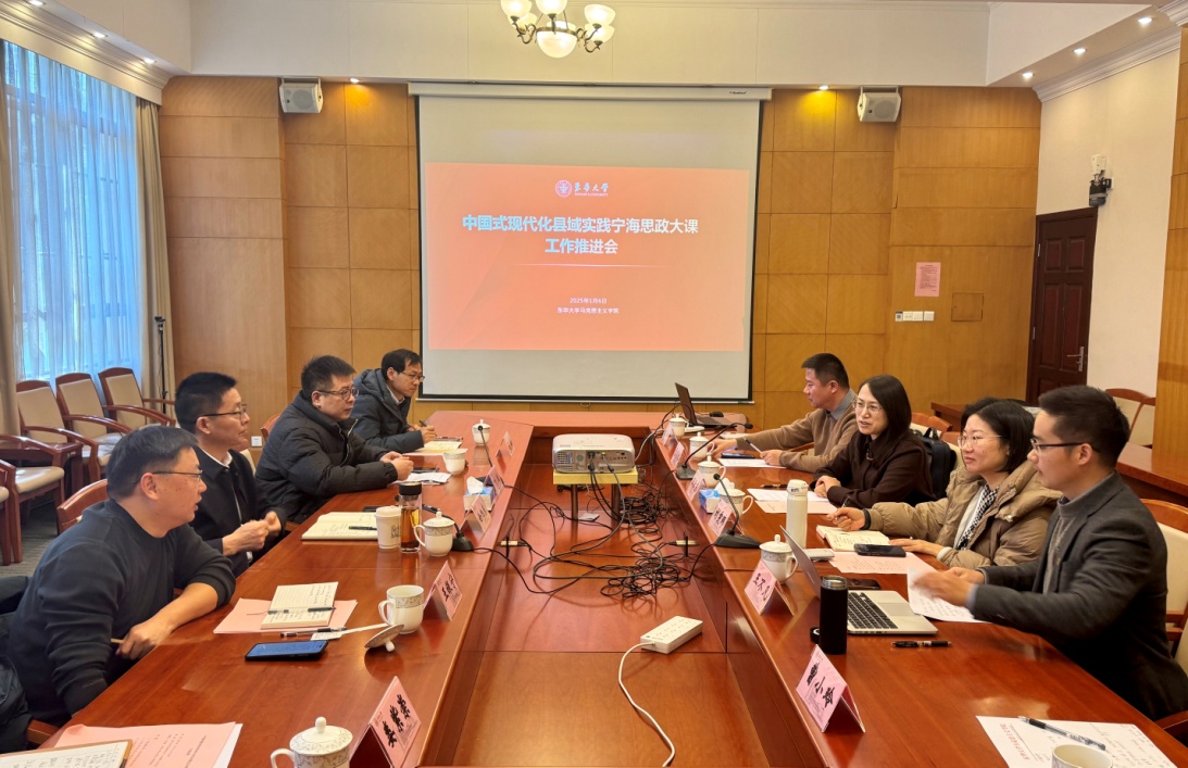 1月6日上午,中国式现代化县域实践宁海思政大课工作推进会在延安路校区召开。宁海县委常委、宣传部部长徐旭东,我校yl8858永利集团院长王治东出席。宁海县委宣传部常务副部长叶挺,宁海县委宣传部副部长、县政府新闻办主任王银宁;我校党委宣传部副部长刘雯玮、yl8858永利集团副院长王不凡、校团委副书记董晓光等参加会议。