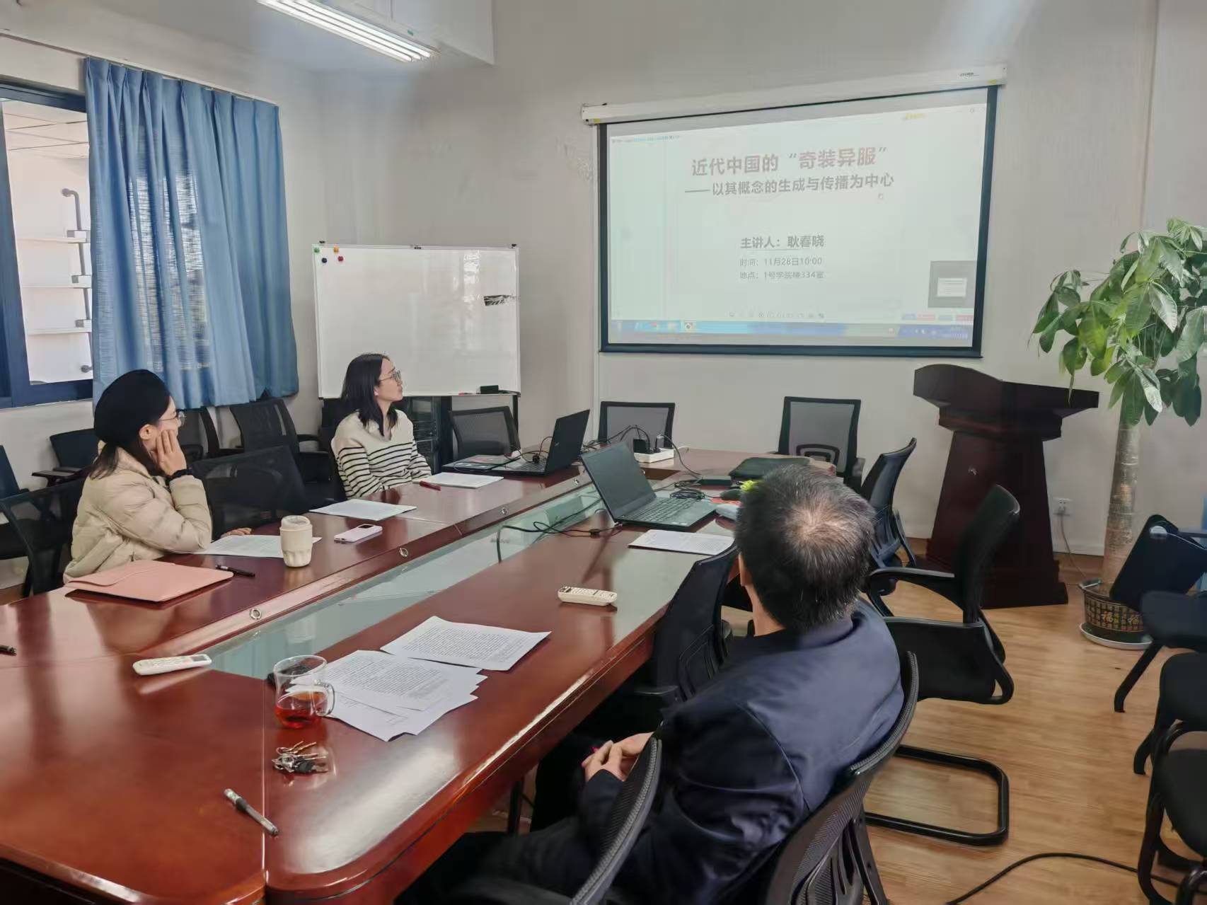 1128日上午,第74期镜月工作坊学术沙龙在学院334室举行。本次学术沙龙邀请我院耿春晓老师为学院老师和研究生开讲《近代中国的“奇装异服”》,孔祥成教授主持本次镜月工作坊学术沙龙。耿春晓老师长期从事近现代社会史研究,曾发表过多篇关于社会文化研究的学术论文。